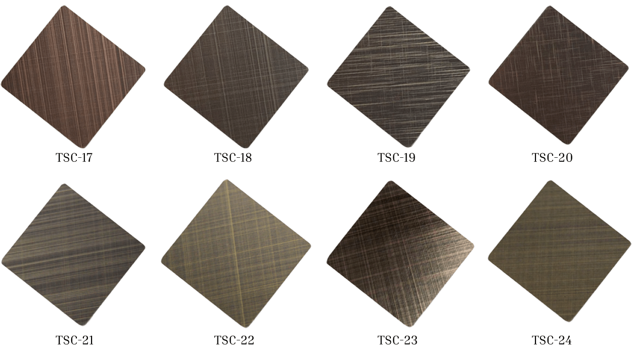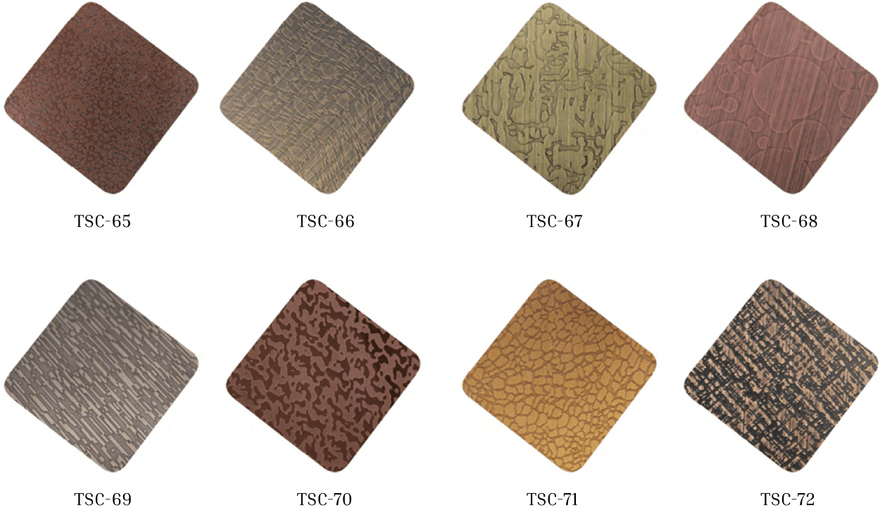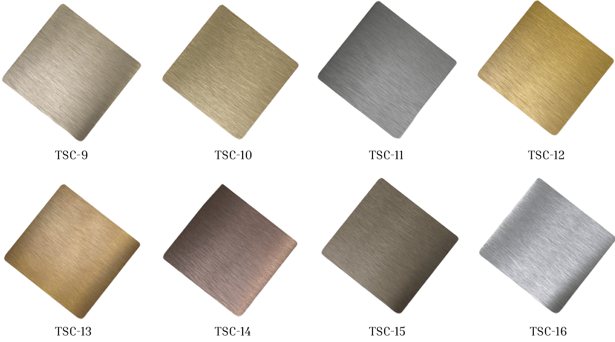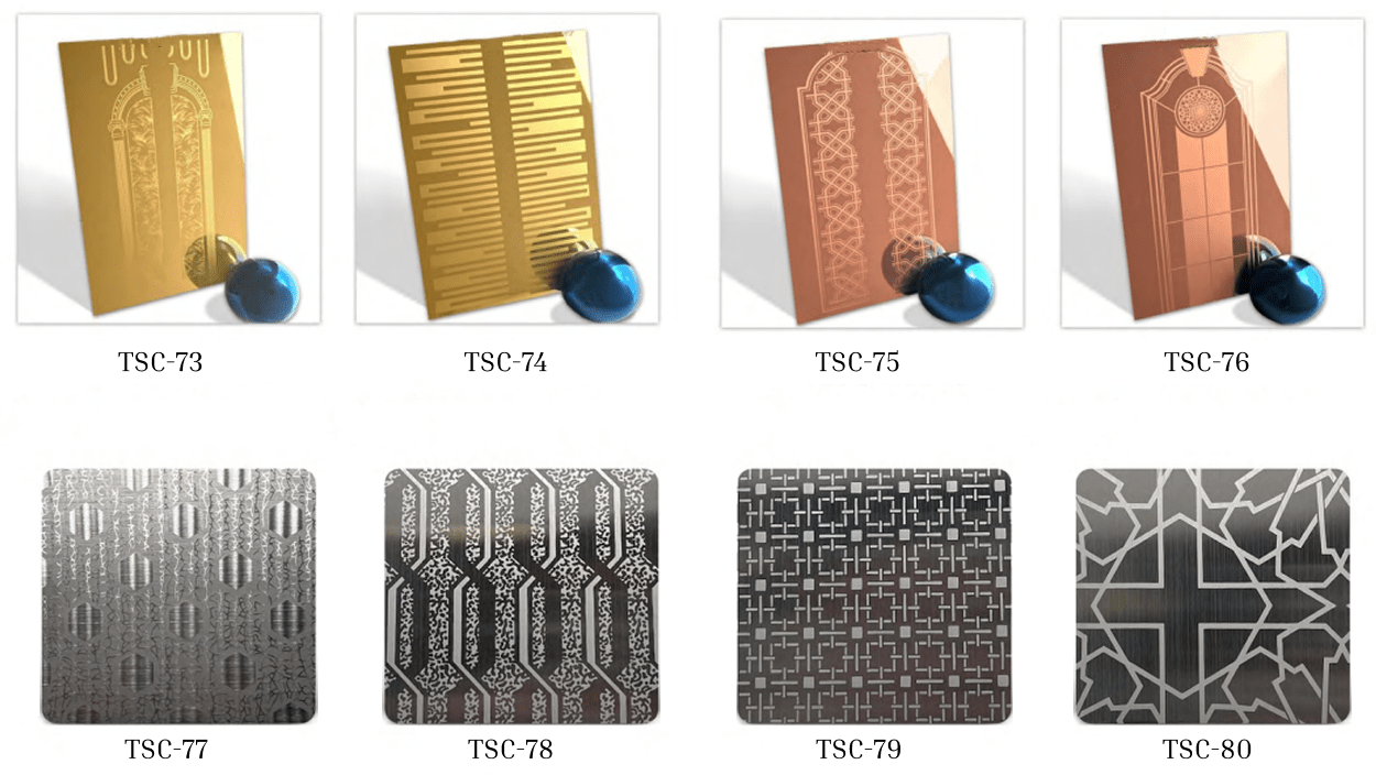 - Surface finishes: Mirror, hairline, brushed, etched, embossed, vibration