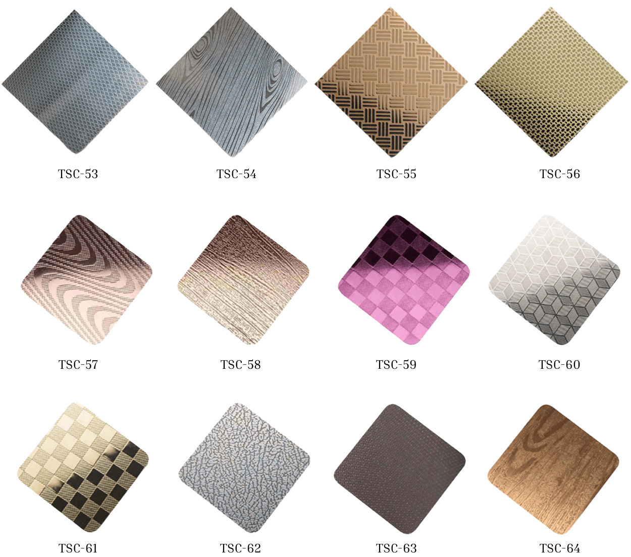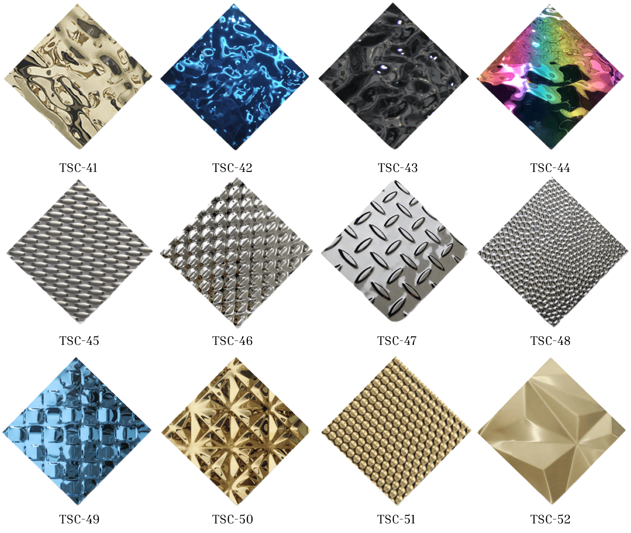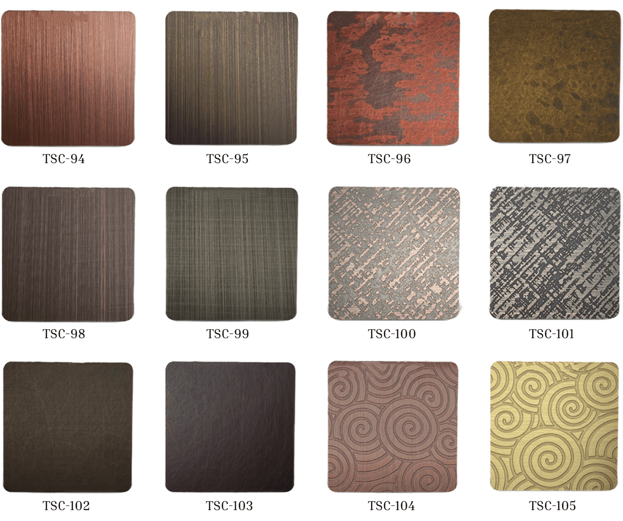 - Surface finishes: Mirror, hairline, brushed, etched, embossed, vibration