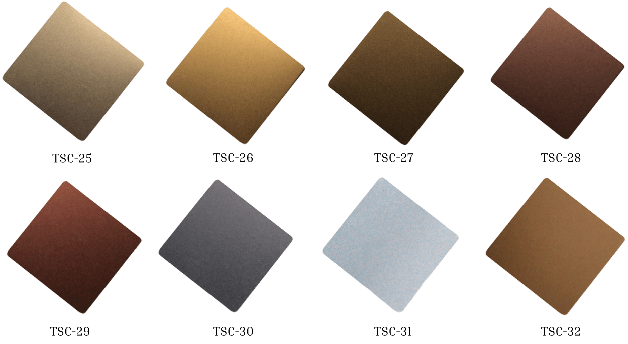- PVD colours. Gold, rose gold, black, bronze, champagne, blue for a stable, colour-rich surface.